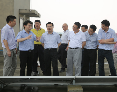 最后,徐書記一行參觀了位于公司4座廠房樓頂,占地近2萬平方米,年發(fā)電量120萬千瓦時的光伏發(fā)電項目。東華是迄今為止余杭區(qū)建設(shè)規(guī)模最大的光伏發(fā)電應(yīng)用企業(yè),也是余杭經(jīng)濟(jì)技術(shù)開發(fā)區(qū)第一家試點啟動光伏發(fā)電的企業(yè)。袁副總向徐書記一行匯報了光伏發(fā)電項目自去年9月10日運行以來取得的成效。徐書記說:“光伏發(fā)電是一種新型能源環(huán)保項目,不僅節(jié)能降耗,還能緩解企業(yè)夏季用電緊張,適合東華這樣的大型制造企業(yè),非常不錯。”