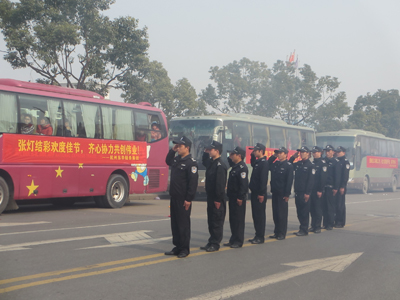 當天是公司上班的最后一天,中午12點30分,在鞭炮齊鳴聲中,在保安們整齊劃一的敬禮中,在現場員工們的揮手中,9輛包車載著返鄉的員工們緩緩地離開了廠區,駛向各自的家鄉。集團副總經理袁立華等一行領導也到現場歡送大家。