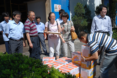 7月25日,盛夏季節,烈日炎炎,余杭區總工會黨組書記、副主席胡建春,余杭經濟開發區總工會主席陸敏一行帶著毛巾、飲料等慰問品,到東華集團看望、慰問奮斗在熱處理車間一線的員工。東華集團副總經理袁立華,總經理助理、黨委書記、工會主席魯小林熱情地接待了胡書記一行,并對區總工會、開發區工會關心企業,看望慰問戰斗在高溫一線的員工表示誠摯的感謝。