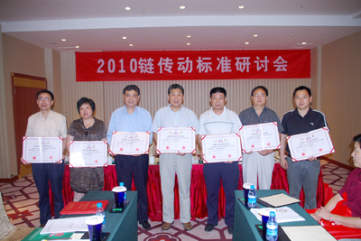 近日,全國2010年鏈傳動標準研討會在江蘇昆山召開。研討會上發布了2008年"中國標準創新貢獻獎"獲獎項目的通知。其中由全國鏈傳動標準化技術委員會組織編寫的“ISO 15654:2004 傳動用精密滾子鏈條疲勞試驗方法、GB/T 20736—2006 傳動用精密滾子鏈條疲勞試驗方法”標準榮獲一等獎。會上向該標準的獲獎單位和個人頒發了獎勵證書。吉林大學鏈傳動研究所、東華鏈條集團等7個主要完成單位獲得了“中國標準創新貢獻獎一等獎”稱號;吉林大學孟祥賓研究員和王義行教授、東華集團葉斌總工程師等10人獲先進個人獎。