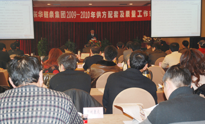 在談到2010年?yáng)|華供應(yīng)鏈建設(shè)時(shí),張總說,2010年,東華將通過 “質(zhì)量提升年”作為貫穿公司全年的中心工作,特別是要加強(qiáng)供應(yīng)鏈建設(shè),使供方提供的產(chǎn)品質(zhì)量、交貨期、價(jià)格、服務(wù)滿足東華市場(chǎng)競(jìng)爭(zhēng)的需要,同時(shí)推進(jìn)事業(yè)部機(jī)制的有效運(yùn)行,強(qiáng)化企業(yè)基礎(chǔ)管理,增強(qiáng)企業(yè)活力,提高顧客滿意度,通過穩(wěn)健持續(xù)地發(fā)展,一步一個(gè)腳印,力爭(zhēng)在5-10年內(nèi)成為世界一流鏈傳動(dòng)企業(yè),并和廣大供應(yīng)商進(jìn)一步建立雙贏互利的合作伙伴關(guān)系。