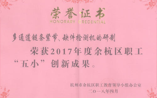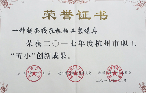 日前,在2018年開發區工會工作大會上,公司工會喜獲多項殊榮。東華鏈條集團工會榮獲2017年度余杭區職工“五小”競賽活動優秀組織單位稱號;子公司自強鏈傳動公司工會榮獲“2017年度余杭區企業技能比武優秀組織單位”稱號;公司“一種鏈條絞孔機的工裝模具”榮獲2017年度杭州市職工“五小”創新成果;公司“梯級鏈自動上油線改進”榮獲2017年度余杭區職工“五小”創新成果獎等。