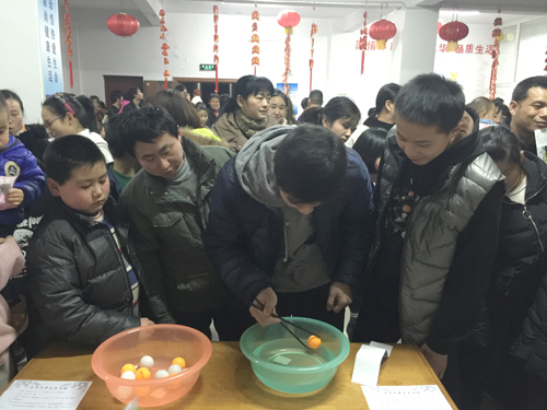 312日晚上,東華員工公寓樓內被大紅燈籠、喜慶裝飾品裝一新,公司元宵佳節員工游園活動在四樓五樓隆重舉辦。活動現場人聲鼎沸,擠滿了員工及孩子們,他們有的猜字謎、有的趣味套圈、有的乒乓球、有的疊羅漢、有的推幸運大轉盤,都玩的不亦樂乎!