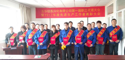 3月22日,在雄壯的國(guó)歌聲中,東華鏈條興化公司隆重召開第一屆職工(工會(huì))代表大會(huì)暨2017年度先進(jìn)表彰大會(huì)。集團(tuán)副總經(jīng)理袁立華、公司法定代表蔣錫林、公司工會(huì)主席汪昌宏、公司副總經(jīng)理邱德方、劉冬根、傳動(dòng)鏈?zhǔn)聵I(yè)部總經(jīng)理?xiàng)钚∮录捌渌袑印⒏鞣止?huì)主席、各崗位標(biāo)兵、先進(jìn)代表、職工(工會(huì))代表等60余人參加大會(huì)。