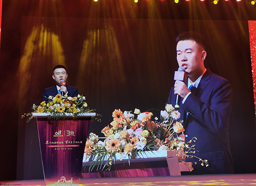 當晚,公司在藝尚雷迪森酒店隆重舉辦答謝晚宴,名譽董事長宣碧華、董事長宣成率中高管和業務骨干接待了參加慶典大會的客人。