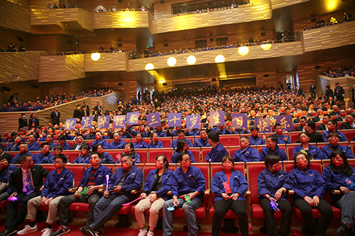 慶典大會在東華三十年輝煌發展的時間年輪視頻中拉開帷幕,整個慶典大會由“筑夢、跨越、奮進、致遠”四個篇章組成,六名員工組成的主持人團隊盛裝亮相主持。