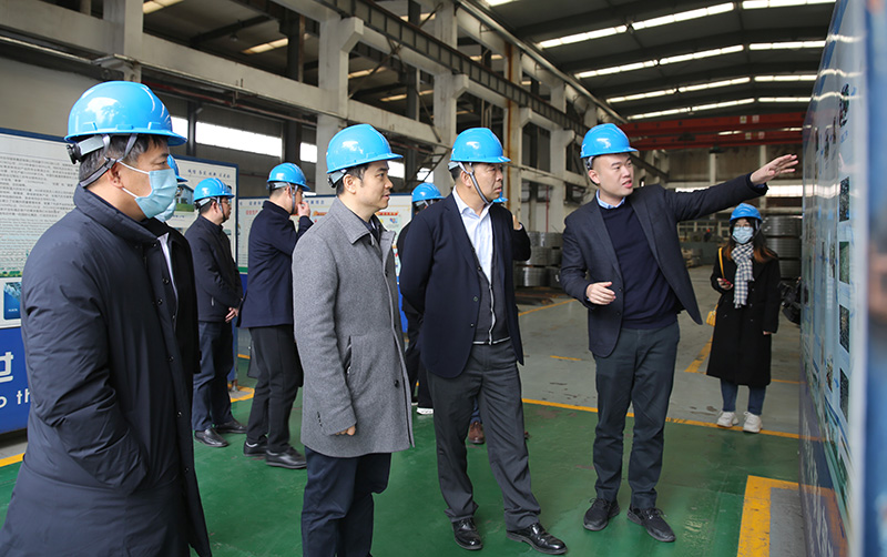 在材料改制車間,宣成董事長向柯吉欣副市長一行介紹了鏈條材料改制情況及車間工藝升級創新情況,該工藝升級創新項目也是“臨平國家級開發區實施的國家循環化改造項目”,項目于2020年9月完成建設。