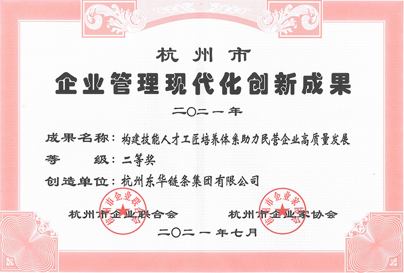 集團(tuán)《構(gòu)建技能人才工匠培養(yǎng)體系助力民營企業(yè)高質(zhì)量發(fā)展》獲評2021年杭州市企業(yè)管理現(xiàn)代化創(chuàng)新成果二等獎。