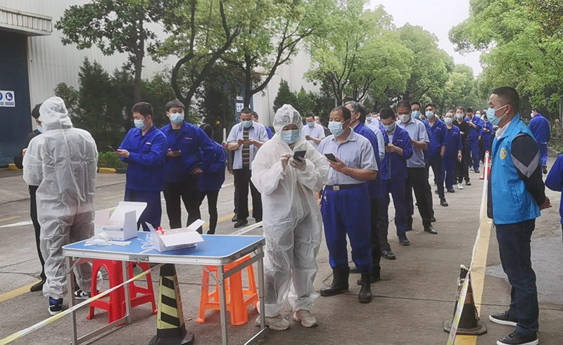 對內,公司在各廠區設置核酸檢測點,進行全員檢測;員工進廠及外部來訪人員一律按防疫要求檢查;?每天對各廠區嚴格消毒成為常態化舉措;專人統計員工的體溫、疫苗接種、核酸檢測、健康碼變色等情況,登記造冊,及時了解員工情況。