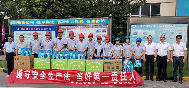 最后,來訪領導向一線員工開展“送安全、送法律、送清涼”關愛活動,把200份防暑物資送到員工手中,并祝大家身體健康,工作取得更好的成績。