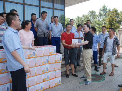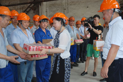7月27日下午,由公司工會(huì)主席魯小林帶隊(duì),對(duì)公司各區(qū)域室外作業(yè)、高溫作業(yè)員工進(jìn)行慰問,向大家送去了慰問品。每到一個(gè)慰問區(qū)域,魯主席都代表公司感謝大家為公司的發(fā)展付出的辛勤勞動(dòng),并叮囑大家注意防暑降溫。
