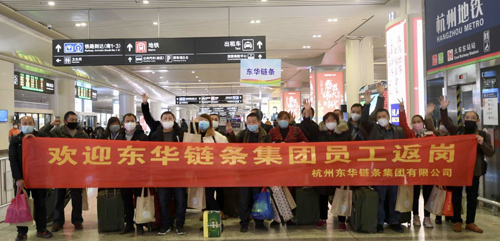 當(dāng)?shù)谝慌俗啥嫉胶贾菝赓M(fèi)專列的18名東華員工有序走出杭州東站時(shí),迎接他們的是區(qū)政府和公司領(lǐng)導(dǎo),還有區(qū)政府贈(zèng)送他們的口罩、牛奶、面包等愛心大禮包,公司還派專人專車護(hù)送他們回到家中,受到廣大員工的好評(píng)。