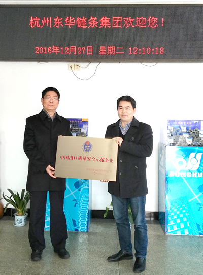 會(huì)上,何處長(zhǎng)針對(duì)“中國(guó)出口質(zhì)量安全示范企業(yè)”的背景及作用作了介紹。袁副總首先感謝質(zhì)檢系統(tǒng)20多年來(lái)對(duì)東華的指導(dǎo)和幫助。隨后,針對(duì)東華產(chǎn)品質(zhì)量提升和知識(shí)產(chǎn)權(quán)等進(jìn)行介紹。何處長(zhǎng)說(shuō),東華集團(tuán)自2007年開(kāi)展免驗(yàn)工作,到現(xiàn)在已將近十年時(shí)間,隨著出口檢驗(yàn)范圍的變化,鏈條產(chǎn)品已不需要強(qiáng)制檢驗(yàn),但東華集團(tuán)一直按照標(biāo)準(zhǔn)堅(jiān)持做好自主管理,產(chǎn)品質(zhì)量不斷提升,質(zhì)量在全國(guó)領(lǐng)先,給同行業(yè)樹(shù)立了榜樣,是中國(guó)鏈條行業(yè)的一面旗幟。為促進(jìn)出口產(chǎn)品質(zhì)量安全水平提升,培育出口競(jìng)爭(zhēng)新優(yōu)勢(shì),根據(jù)《中國(guó)出口質(zhì)量安全示范企業(yè)創(chuàng)建工作規(guī)范(試行)》的規(guī)定,經(jīng)各直屬檢驗(yàn)檢疫局評(píng)估推薦,國(guó)家質(zhì)檢總局審核,首批授予東華集團(tuán)“中國(guó)出口質(zhì)量安全示范企業(yè)”稱號(hào)。此榮譽(yù)實(shí)質(zhì)為“出口產(chǎn)品免驗(yàn)”的延續(xù),允許企業(yè)可以在任何包裝上做宣傳,希望東華鏈條集團(tuán)越做越好。