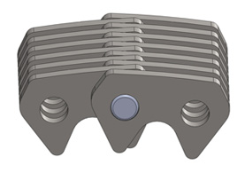 ● 按嚙合方式主要有:內嚙合、外嚙合、內外復合嚙合齒形鏈。