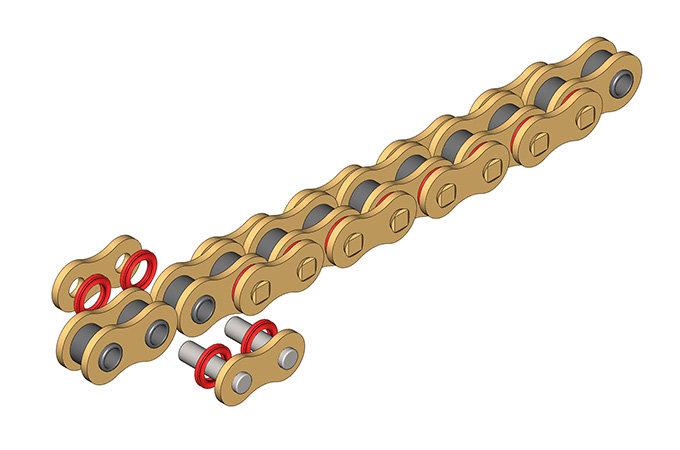 ● 摩托車密封圈鏈條采用優(yōu)質(zhì)的材料和潤滑油脂、先進(jìn)的加工工藝,產(chǎn)品具有高疲勞強(qiáng)度、高抗磨損性能等特點(diǎn),以滿足不同排量、不同用途的摩托車使用需求,廣泛應(yīng)用于各類摩托車賽事以及公路使用摩托車。