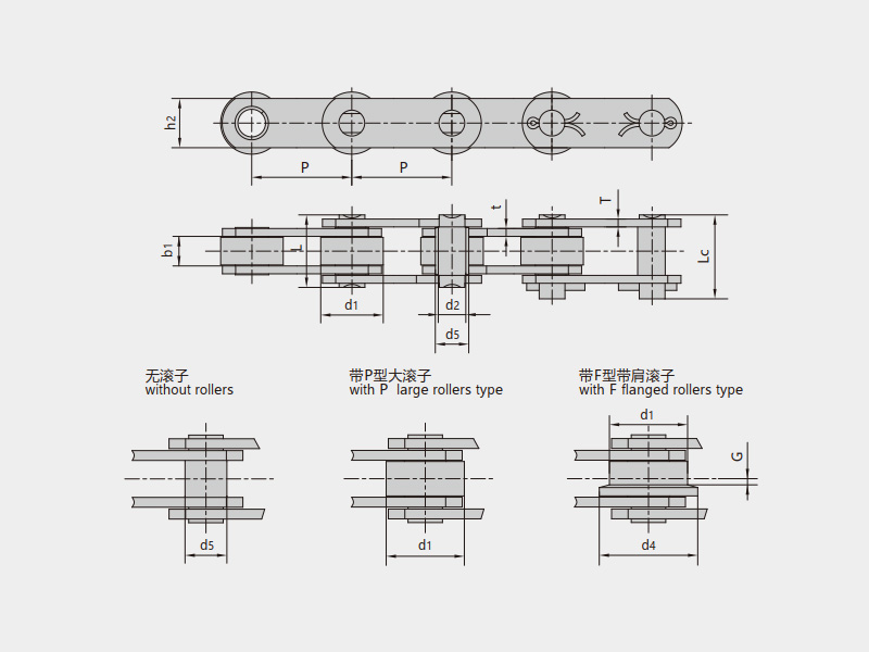 帶S型小滾子帶P型大滾子帶F型帶肩滾子