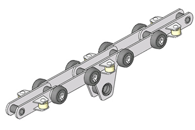 1.擺桿線鏈條:采用滾輪外置式和注油孔結構的設計,實現鏈條平穩運行、延長使用壽命;